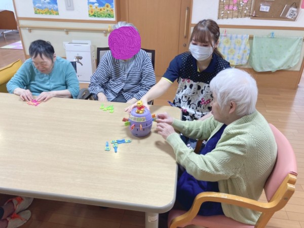 午後のレクの時間を使って黒ひげ危機一髪ならぬ、ぷーさん危機一髪ゲームで楽しみました♪