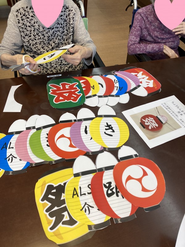 今年もCOVID19の影響でご家族の皆様に来ていただいての夏祭りは開催する事が出来ません。しかし、だからといって夏祭りを開催しないというのも寂しいので、利用者様と職員で夏祭りを実施する事としました。日付は8月25日の午後となります。その日はリモートで他施設と繋ぎリモート盆踊り大会を開催する予定となっています。少しでも雰囲気が出るように皆様と一緒に今から夏祭りの準備を行っています。飾りつけは職員ではなく、利用者様に作って頂きます。職員による夏祭りというよりは、利用者様1人1人が主役になれる夏祭りを目指していきたいと思います。