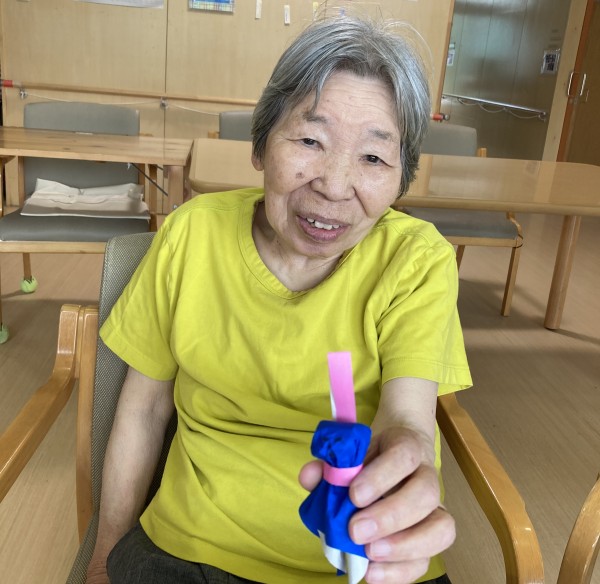 「頼むよ、てるてる坊主!」と念を送るご利用者様。