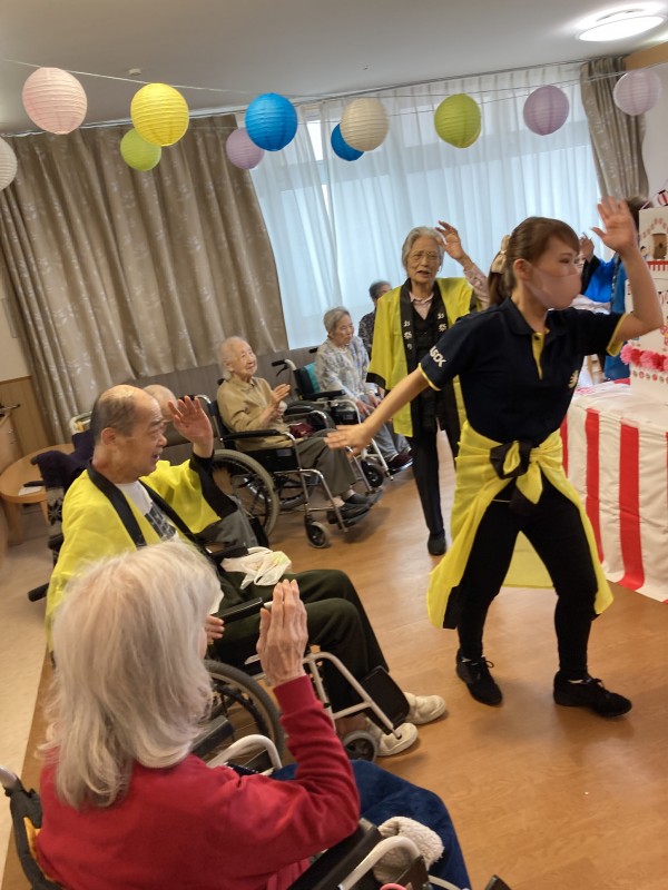 お神輿を囲んで職員もご利用者様も一緒になって踊って頂きました。