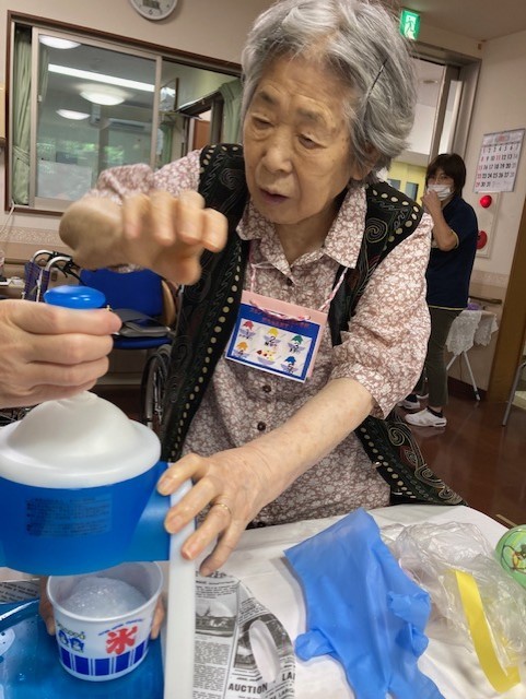 前々から夏はかき氷のレクリェーションを行ないたいと思っていたので実現できて本当に良かったです。