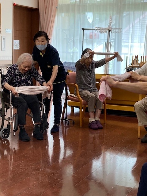 続いてタオルを使っての体操を行いました。