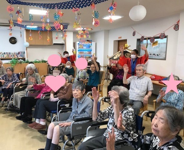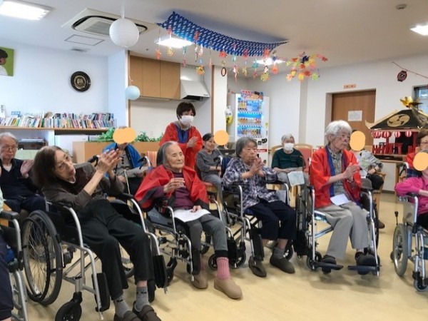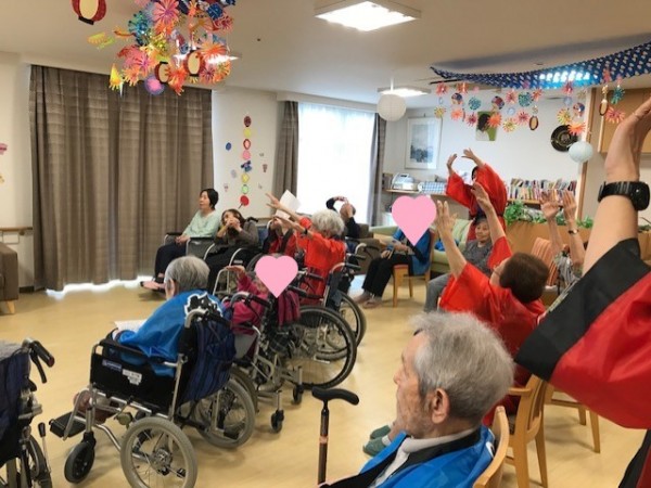 飾りつけをして、職員もハッピを着て参加です♪