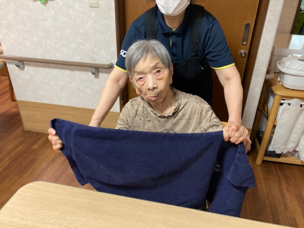 今回は先日ホーム内で岡庭先生を迎えて一緒にタオル体操をしました。暑い中ご利用者様の皆さん元気に体を動かしている様子を見て僕(ずーみん)も体操したくなりました。