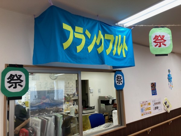 入居者様の目の前で焼きそばやフランクフルトを焼いたり、屋台を作って本格的な夏祭りを味わってもらいました。