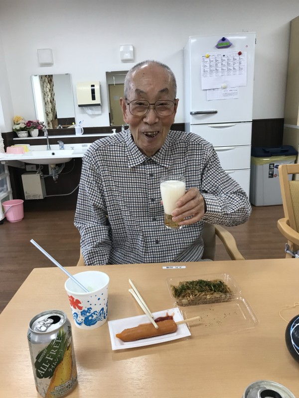 納涼祭の開催を入居者様に事前告知をすると「楽しみだ、食べ物とか出るの?」興味津々。