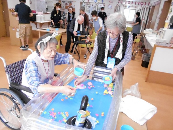コロナ禍で大変厳しい状況の中入居者様に少しでも楽しんで頂きたい思いから当ホームでは2年ぶりとなる納涼祭を8月23日に開催しました。
