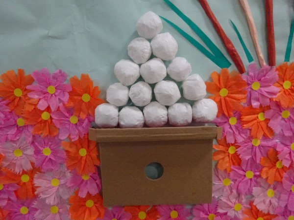 ちなみにお月様も同様にお花紙で出来ているのですがウサギちゃん用に丸めたサイズよりお月様用に丸めたお花紙の方が小さいので細かいです・・・(^^)/