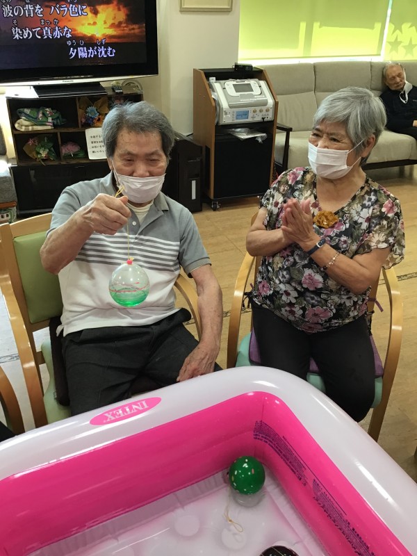 盆踊りがリモートで開かれたので、盆踊りにちなんで、ヨーヨー釣りをやりました。