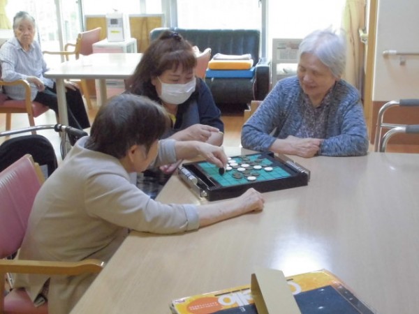 オセロは、二人でやるゲームですね、こちらは、漢字合わせのパズルを楽しまれております。あれ~人数が少し少ないようです。男性利用者の姿がありません。9月に入りすぐに、腸閉そくのため入院その2日後、肺炎のためもう1人入院されてしまいました。その為ユニット2は、女性6人しかおりません。早く帰って来て下さい。