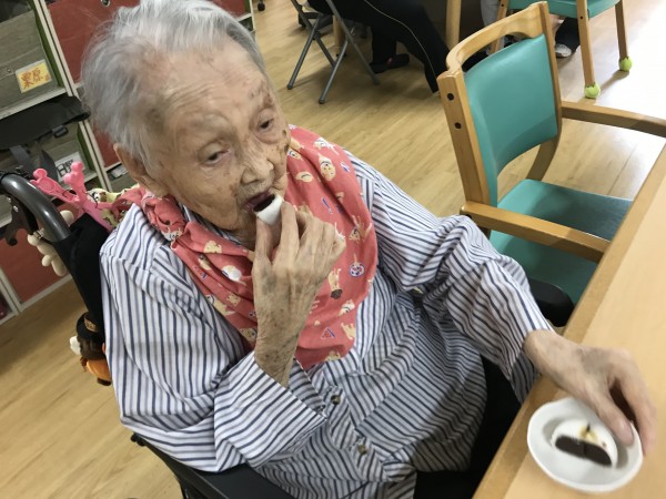 最後はご利用者様と職員で、紅白饅頭を頂きました!!