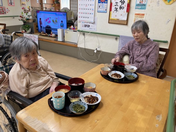 午後のおやつでは、紅白のお団子やおはぎを手作りしました