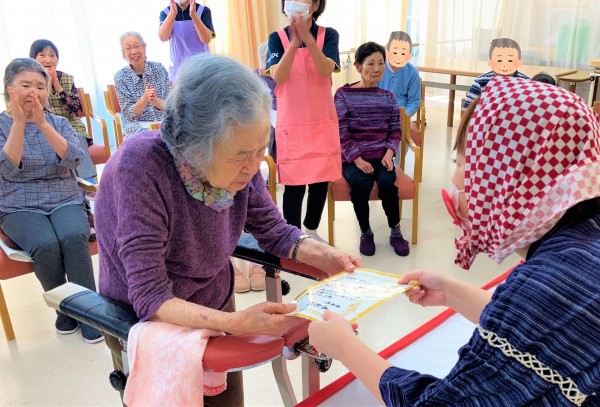 それを見ていた他の入居者様たちも一斉に拍手でお祝いをされました。