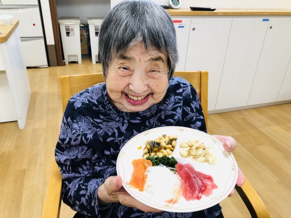 以前は生ものは出すことが出来ませんでしたが、食事の提供方法が変わり、美味しいお刺身が安全に口に入るようになったんです。