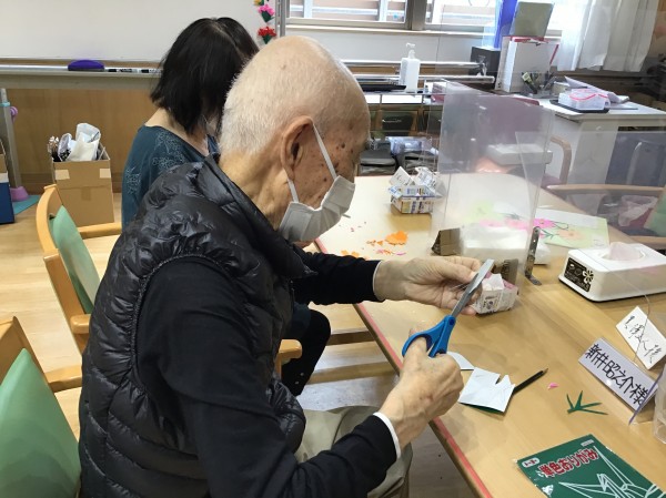 待ってる間にコスモス飾りを作ります!