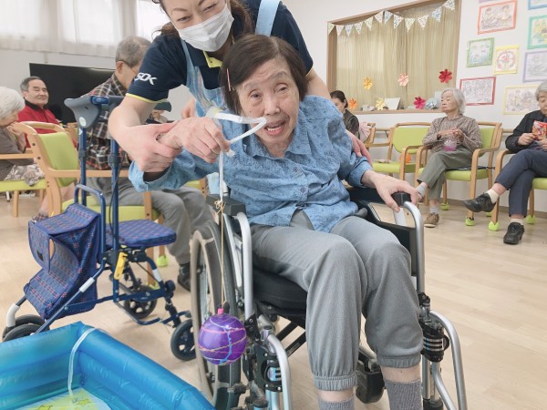 ちゃんとお水に浮かんだ本格的なヨーヨーつりのコーナーもご用意しました!