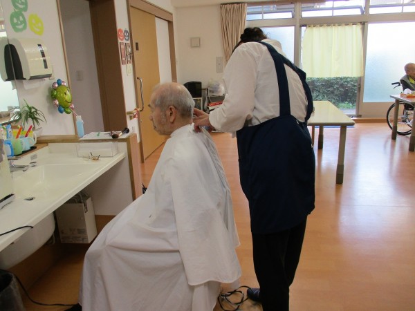内野本郷では2ヶ月おきに訪問理美容が来てくれますが、どの階の入居者様この日を待ち望んでいましたよ(*^^*)