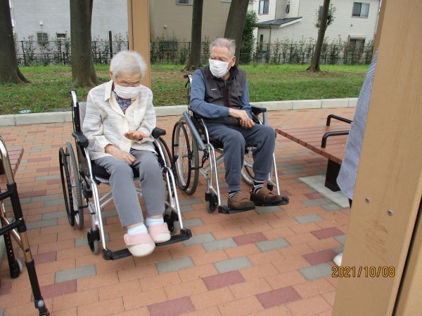 どんぐりを手にした入居者様