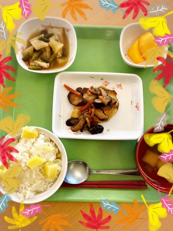 『サツマイモご飯!柿だ!秋だねぇ』