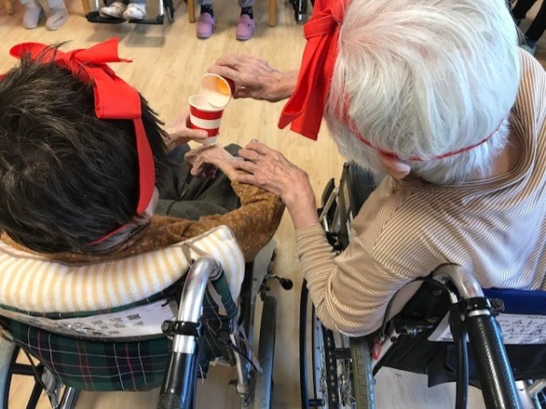 赤組・黄組に分かれ、ボール投げ・コップ廻しゲームを笑顔いっぱいで楽しく行いました。