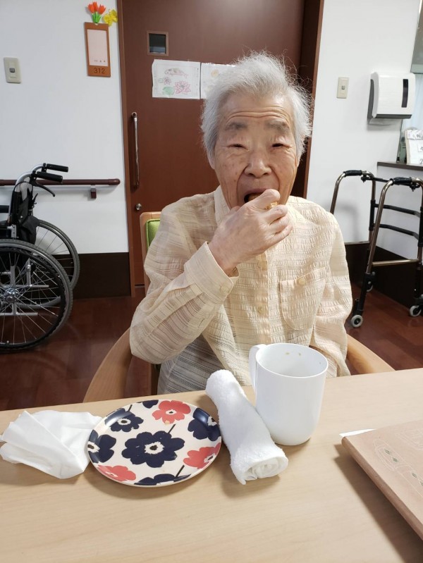 I様は他の入居様が誕生日ソングを歌ってくれた後に立ち上がって丁寧にお礼。
