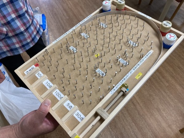 弾く力が強いとビー玉が飛び出す事がある為、若干の改善余地はあるもののご利用者は楽しまれているご様子でした。