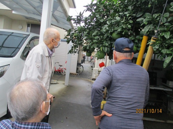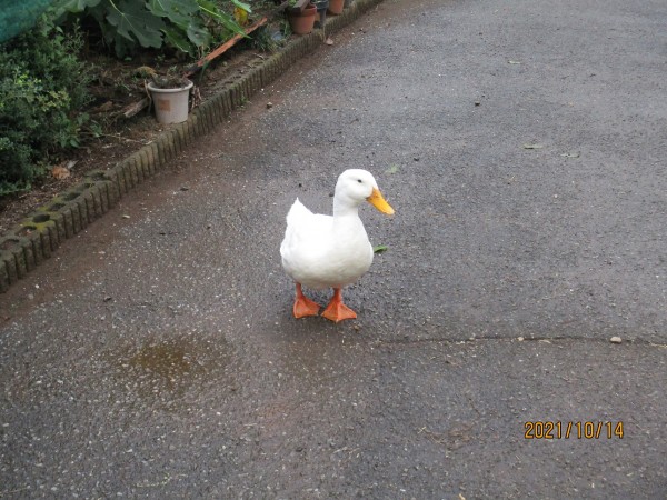 途中ご近所の方と立ち話をしたり、その方のお庭のみかんの木を見せてもらったり、そちらのお宅で飼っているアヒルに皆さん