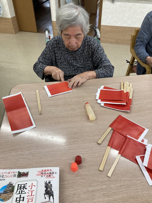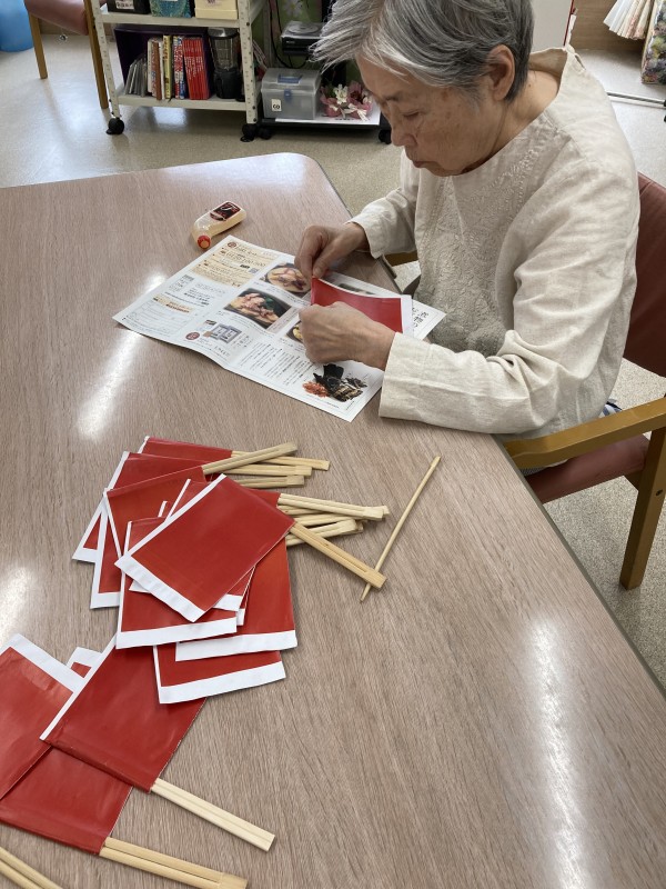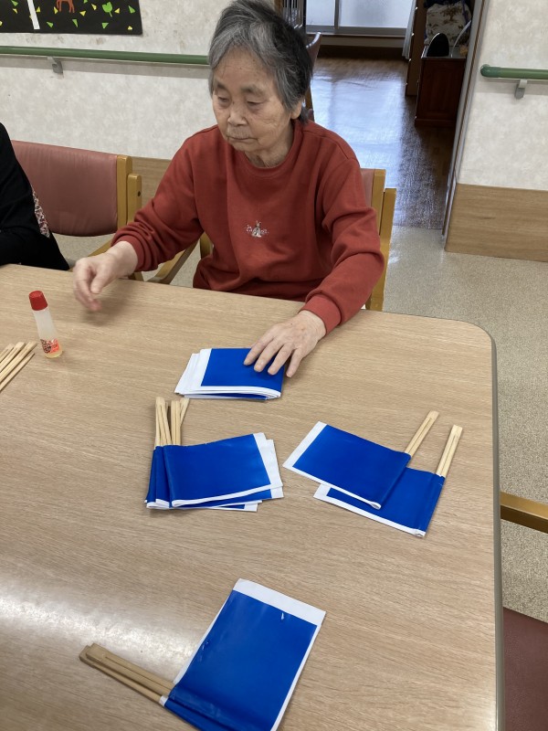 みなさん、手際がとても良く、なんなく赤旗・青旗は人数分完成しました♪