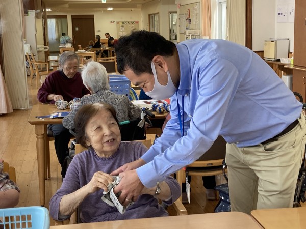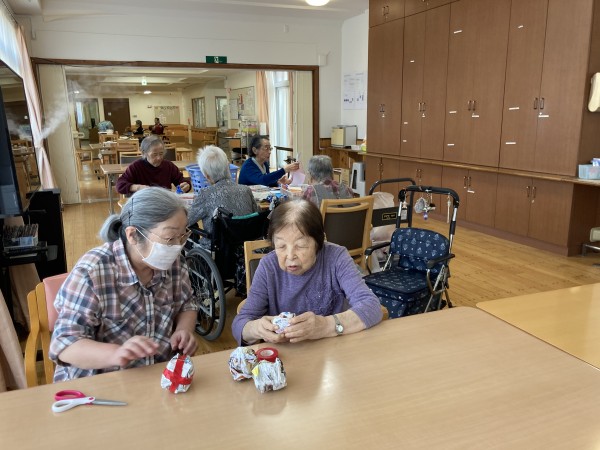 その道具作りをレクリエーションで皆さまに手伝って頂きました♪