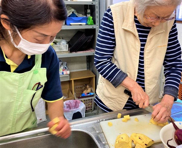 さつま芋をひと口サイズまで刻むのは途方もないように思えますが、さくさくと軽快に作業を進めるS様は頼もしく感じられました(*^▽^*)