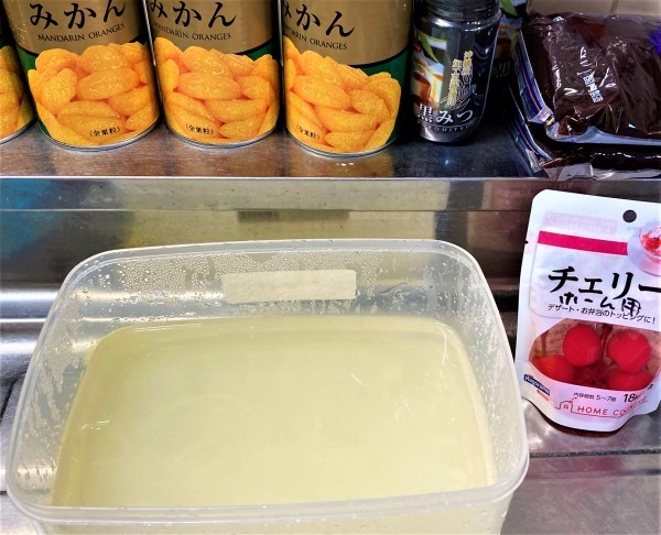 先ほどO様が鍋で温めていた液体は寒天でした。