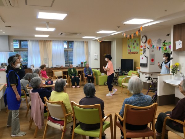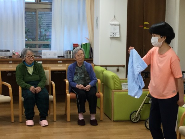 この日は、先生がホームに来られての体操だったようです。