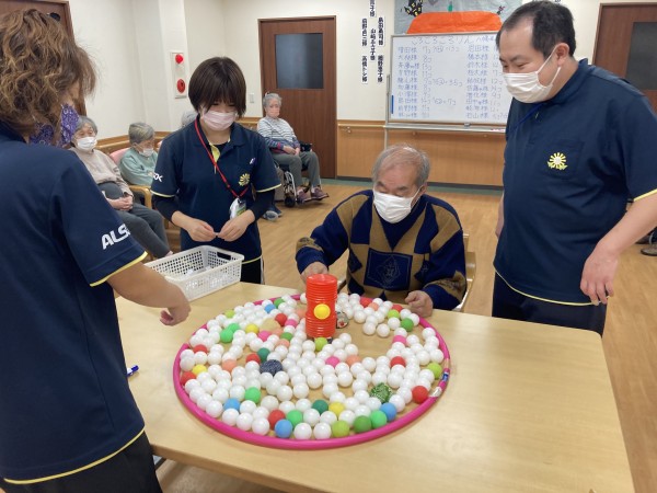 何個もピンポン玉を持ち上げられた利用者様は、嬉しそうでした。(≧▽≦)