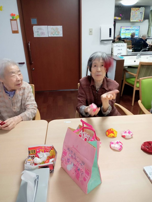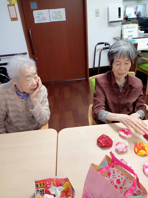 お手玉組のお二人は歌を口ずさみながら、上手にまわしていました。