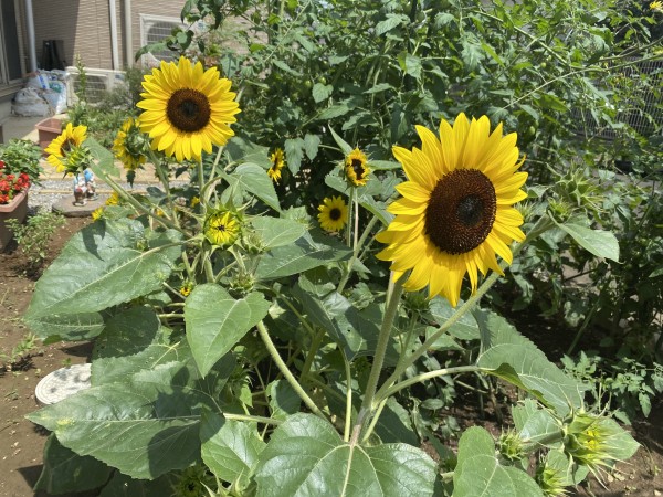 春に植えたトマトやひまわりは元気にぐんぐん成長し