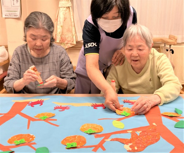 折り紙を細かくちぎったり、それをひとつずつ張り付ける作業は指先をよく使うため、認知症の進行予防にも効果的かもしれません(*^_^*)