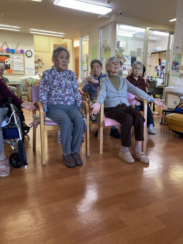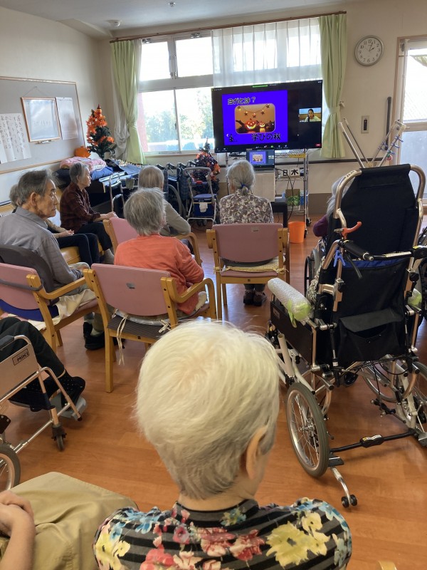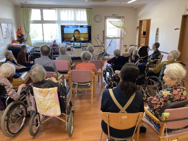 リモートでのあんしんヨガに、ようやく入居者様も職員も慣れてきました。(大画面のおかげでもある)