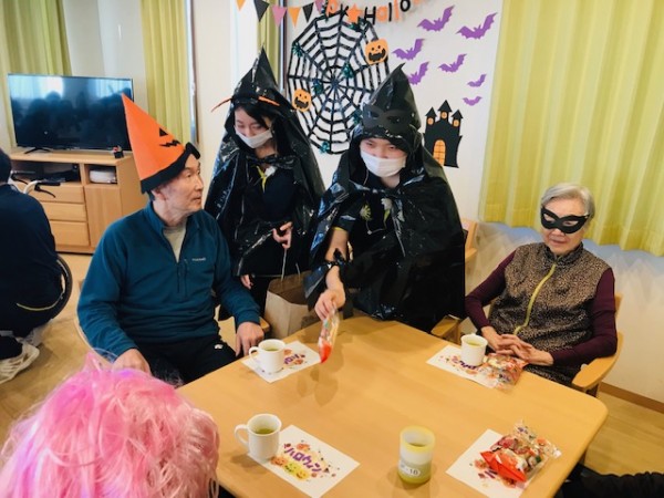 仮装したスタッフから、少しばかりのおやつを配りました。