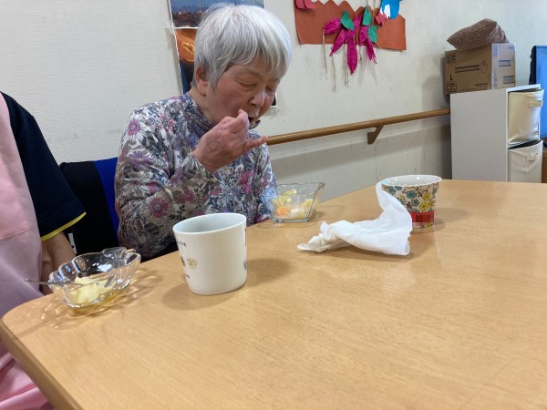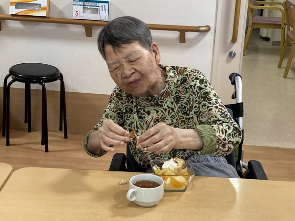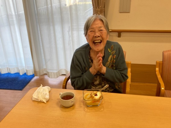10月にお誕生日を迎えた方のお祝いをしました!ハッピーバースデーの歌を歌って、シュークリームとフルーツ缶の盛り合わせを召し上がりました!笑顔で喜んでくださり嬉しいです♪これからもお元気で過ごして下さい!