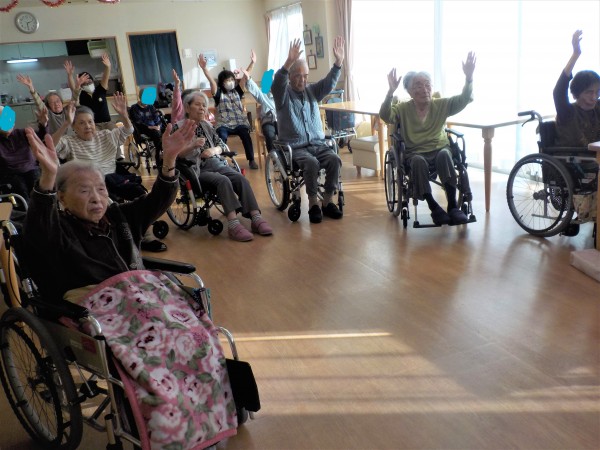 今回は、2階のリモート運動教室 いきいきリズム体操をおこないました。