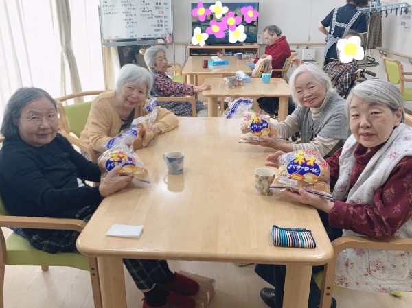 パンの入った袋を見て「これ食べられるの!」と喜ばれたご入居者様たち。