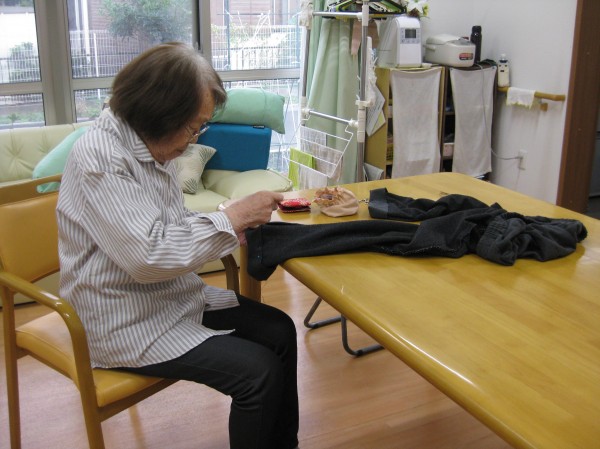 こんにちは!グループホームみんなの家・あきがせの介護ブログです。よろしくお願いいたします。今日はお手伝いのご様子です。ズボンの丈が長いので職員と一緒にズボンの丈つめを行いました!!職員顔負けでした!!プロ並みです(^^♪)