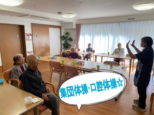 二階入居者様方、『集団体操・口腔体操・早口言葉』に大変意欲的に参加されています。