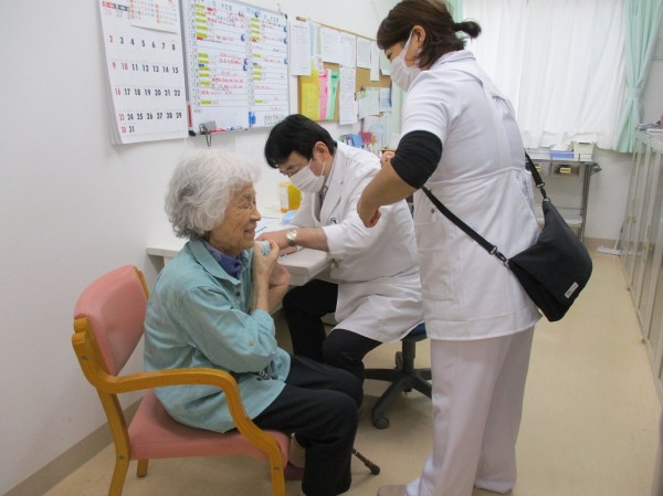 本日3階の入居者様の4名のインフルエンザワクチン接種を行われました!
