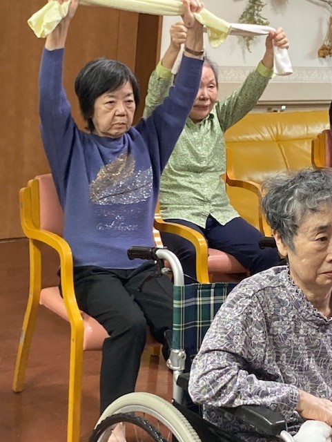 今日はタオルを使った体操です