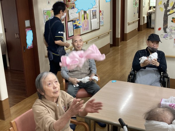 途中、タオルを上に投げてキャッチするという運動がありましたが