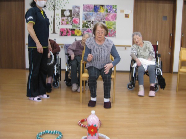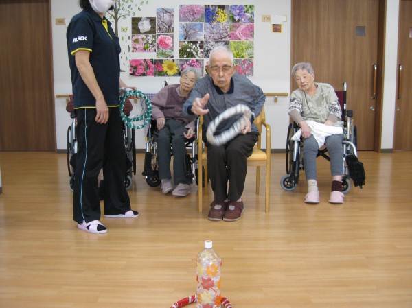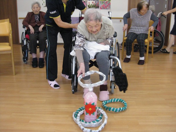 こんにちは!グループホームみんなの家・あきがせの介護ブログですよろしくお願いいたします。ゲームとして輪投げ遊びを行いました!!中々的の中に入らないよ・・・と悔しそうでした(´;ω;`)