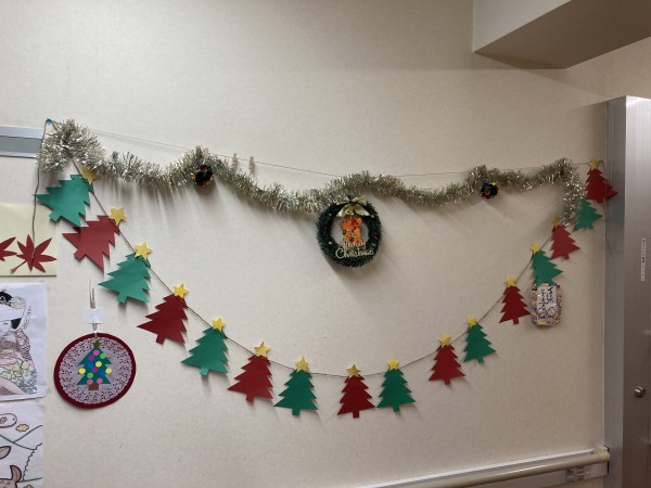 こんにちは、グループホームみんなの家・蕨の介護ブログをご覧いただきありがとうございます。11月も、終わり先生が走る月になりますね。今年もコロナと共に年越しかと心配しましたが、何とか、クリスマスを迎え、年越しを皆様とワイワイ迎えられそうですね。でも新しい変異株が出始めたみたいで、手放しでは喜べないです。さて、11月に入り、グループホームに新しいご利用者様が増え、楽しい毎日を過ごされておられます?ちょうど、クリスマスまで、1か月となりホームの中も、少しづつクリスマスの飾りがあちら、こちらに増えてきました。ご利用者様と職員が一緒に居室の入り口に飾るリースづくりをしたり、ツリーの飾り付けをしたり、ぬりえをされたりとクリスマスを楽しみにされています。11月から、条件付きですが、面会ができるようになりました。久々にご家族と面会されうれしそうなお顔を見るのは職員もうれしいです。早く元のような普通の生活に戻れることを祈ります。
