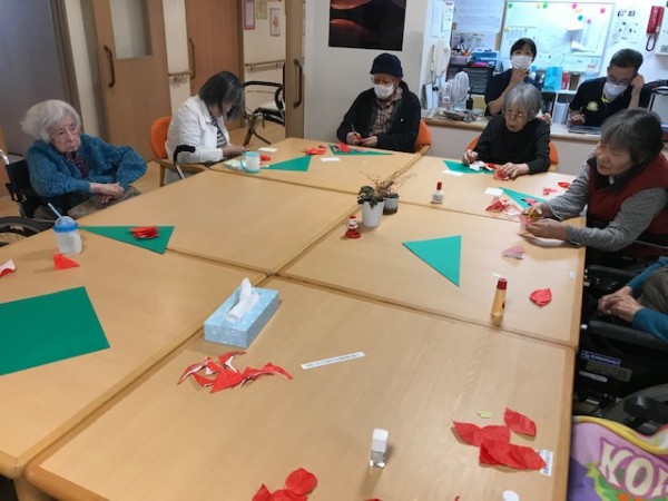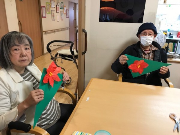 3階のレクリエーションで「クリスマスツリー」を作りました。(^O^)