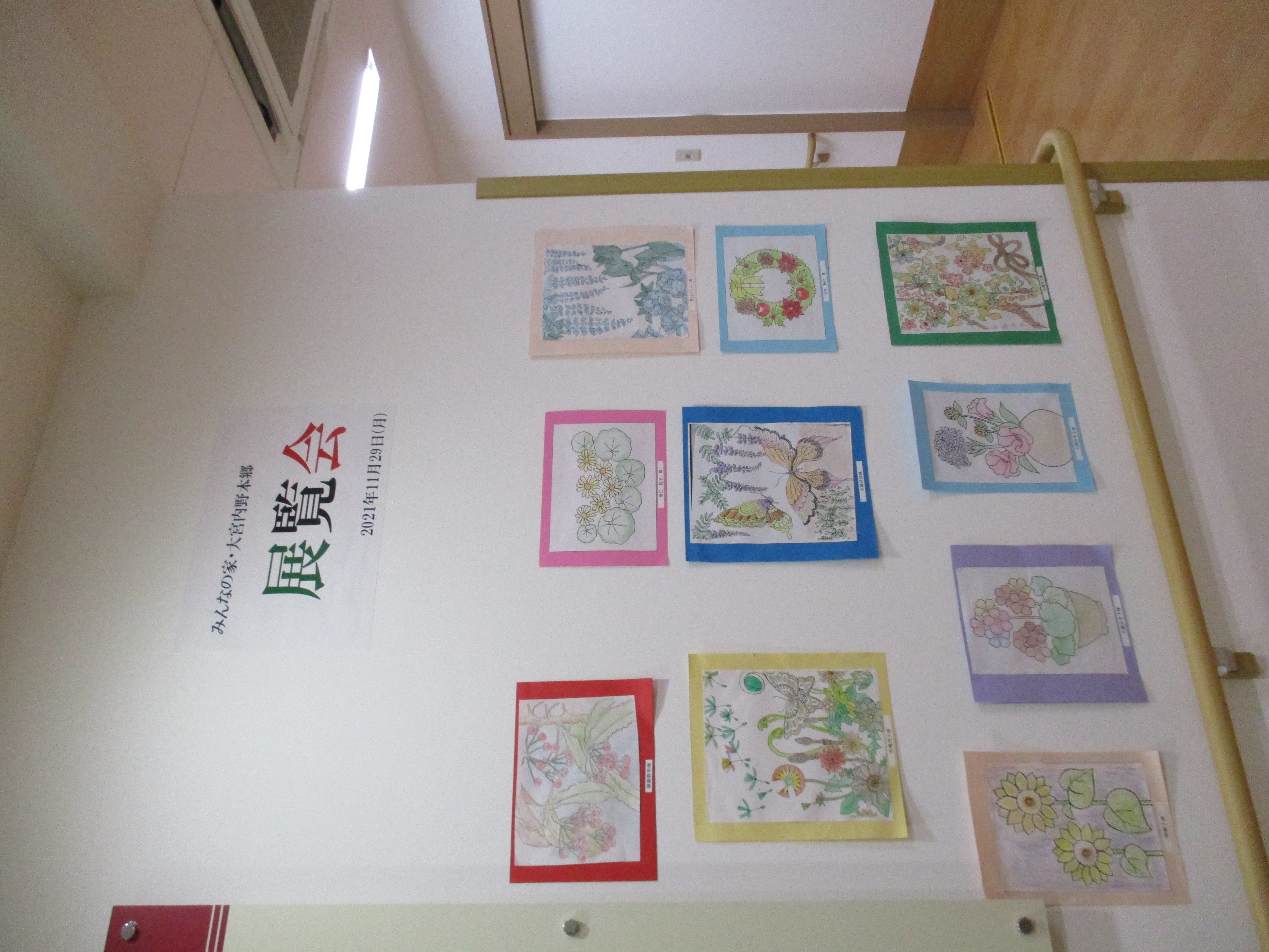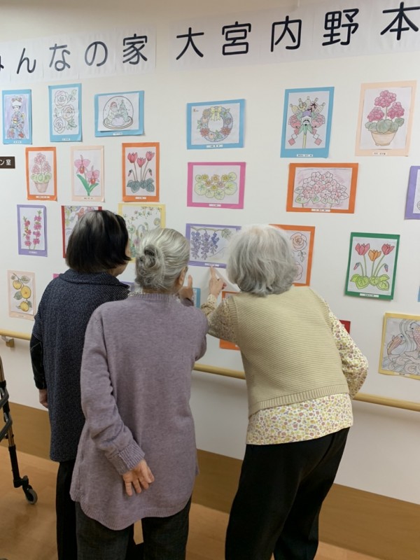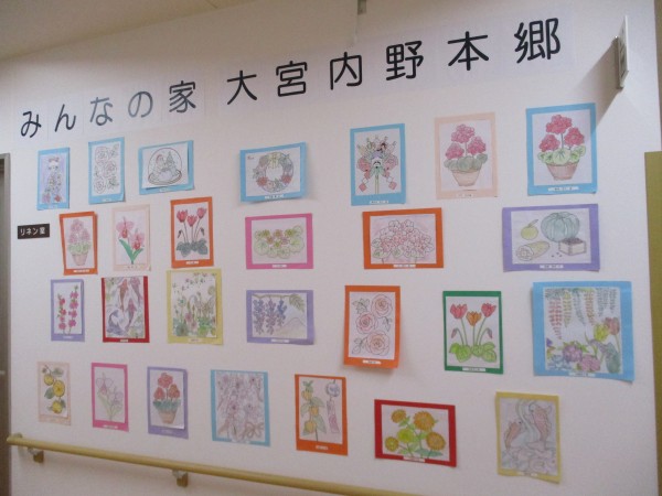 1階〜3階の入居者様のぬり絵を展示させていただきました♬